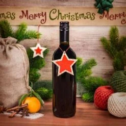 Trendiger Holzstern mit gelasertem Stichrand und aufgeklebten roten Filzstern, sortiert in zwei Größen. Dieser Anhänger für Flaschen kann auch hervorragend als Deko für Ihre Geschenke verwendet werden.