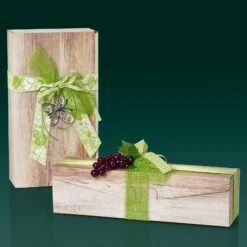 Flaschengeschenkkarton mit Motivdruck helles Holz für 2 Flaschen