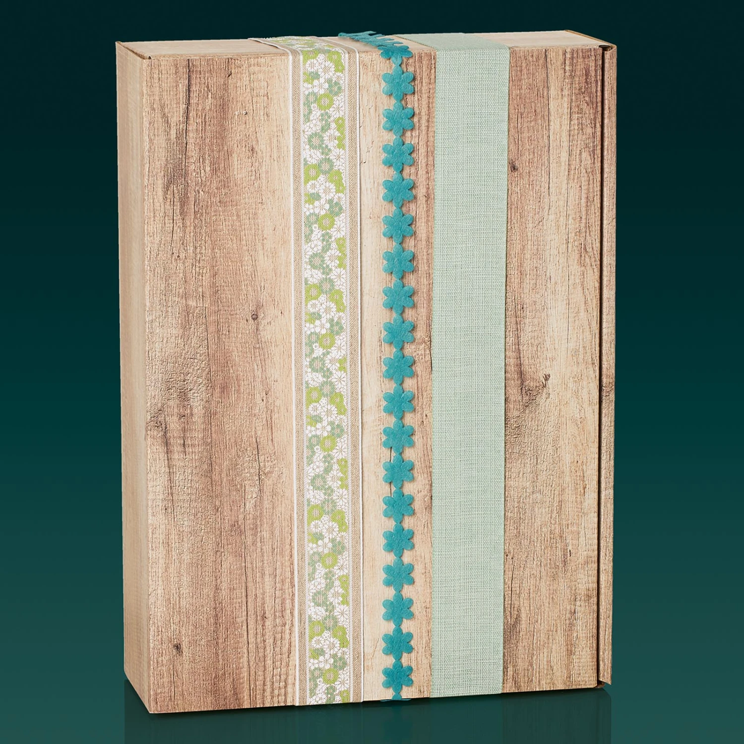 Flaschengeschenkkartons mit Motivdruck helles Holz für 3 Flaschen
