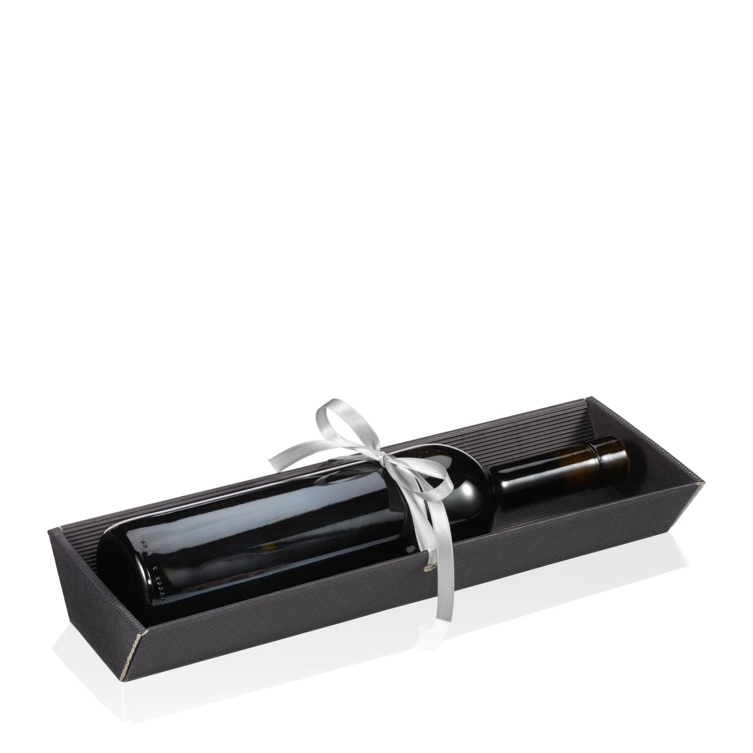 Präsentschalen Schwarz mit Satinband für eine Flasche Wein/Sekt bis 355 mm Länge.