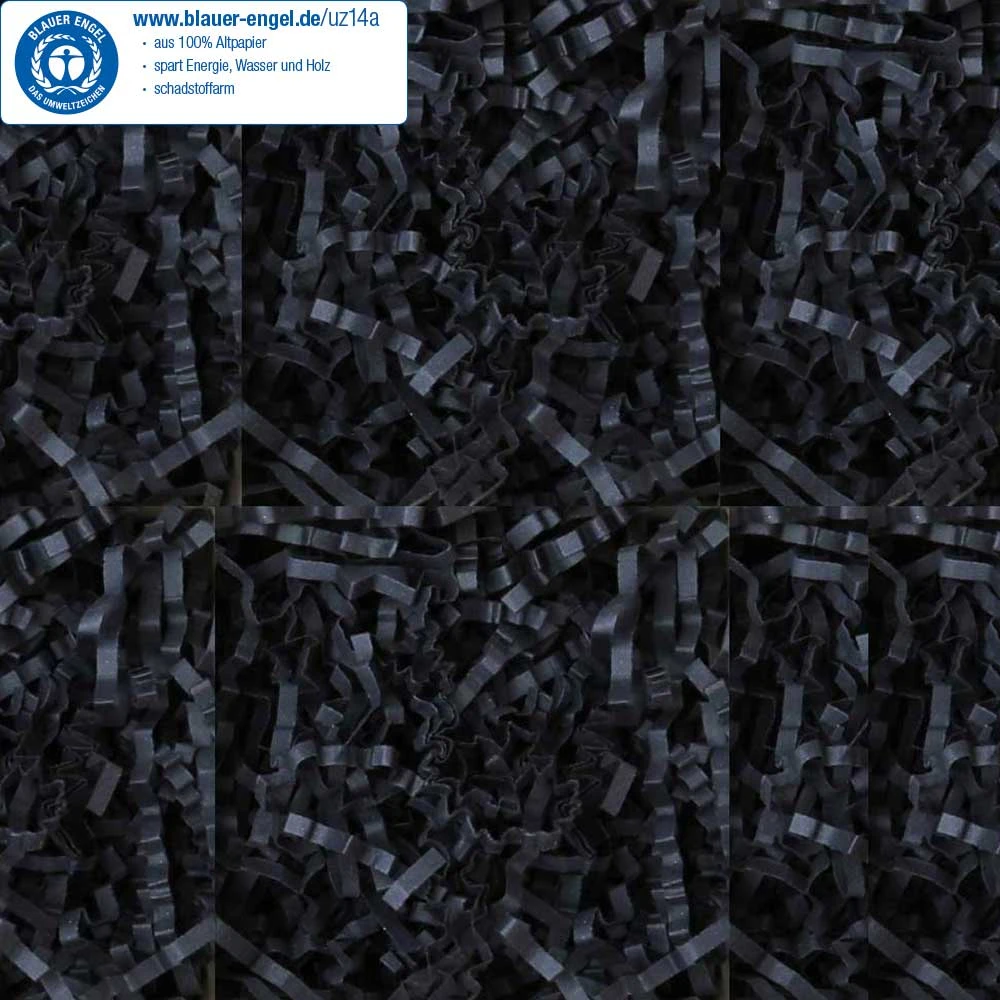 Schönes Deko Füllmaterial aus durchgefärbtem, 3-lagigem 120 gr. starkem Papier in Schwarz eignet sich optimal als Polstermaterial für Pakete und Verpackungen. Dieses Füllmaterial aus Papier ist auch bestens geeignet für den Einsatz als Alternative zur Holzwolle bei Geschenkkörben und anderen Geschenkverpackungen.