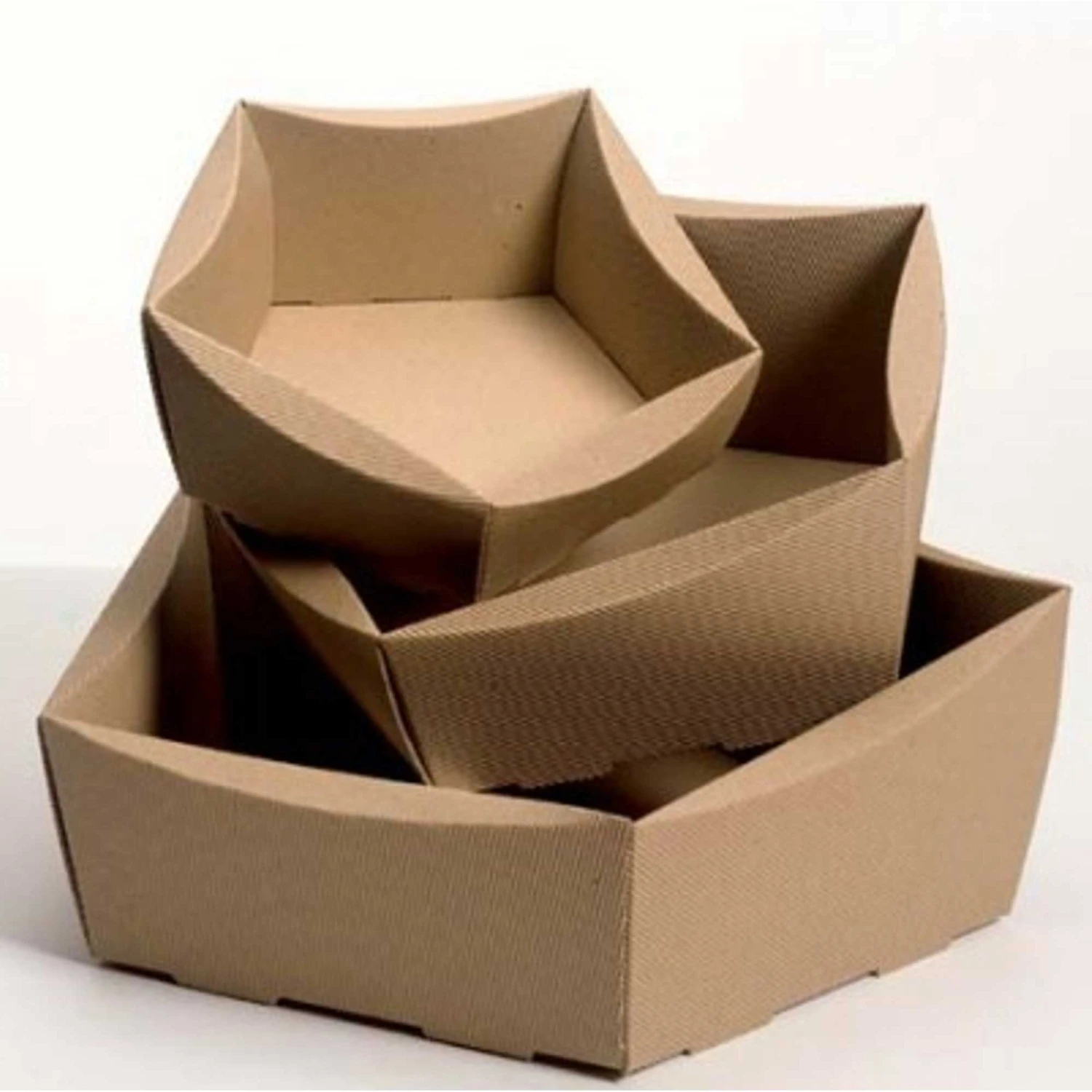 Diese fünfeckigen Geschenkkörbe mit offener Welle eignen sich perfekt zum individuellen und kreativen Gestalten von exklusiven Präsentkörben. Diese sternförmigen Geschenkschalen kommen platzsparend flachliegend zu ihnen und lassen sich leicht aufbauen.