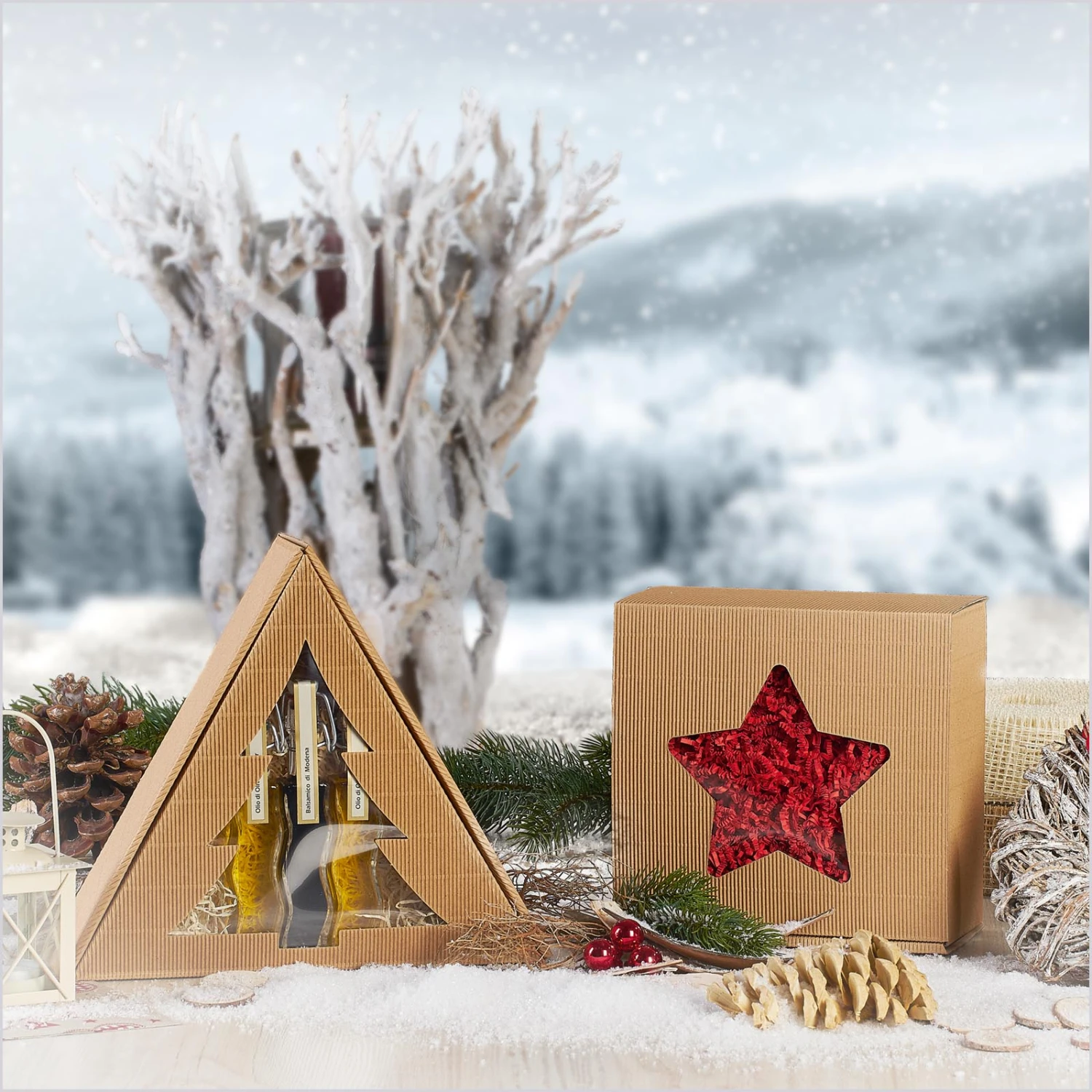 Dieser schöne schlichte Geschenkkarton in natur braun mit Fenster in Stern-Form ist die ideale Geschenkverpackung für die unterschiedlichsten Geschenke und das nicht nur zu Weihnachten. Zusammen mit unserem dekorativen PresentFill Füllmaterial, Holzwolle oder Packseide bietet diese Geschenkbox viel Platz für ihre Geschenke, welche durch das Sichtfenster besonders in Szene gesetzt werden können. Diese hochwertige Geschenkbox hat eine Oberfläche aus offener Welle. Die Innenseite ist in der gleichen Farbe wie die Außenseite. Durch das vorhandene Fenster mit Folie, welches als Stern gearbeitet ist, ist diese Präsentbox perfekt als Geschenkverpackung zu Weihnachten.