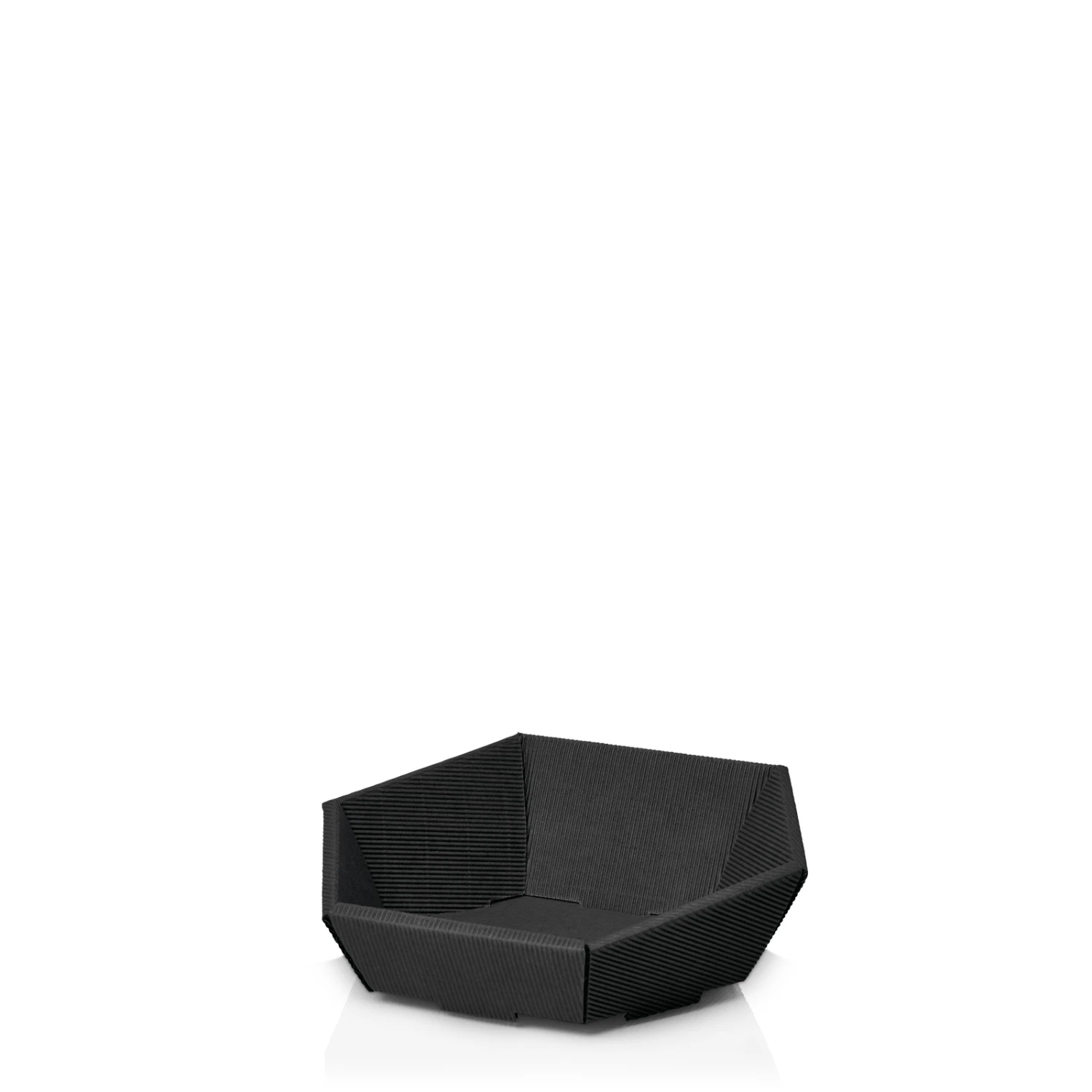 Sechseckiger Präsentkorb aus Welle Karton Mini in Schwarz.