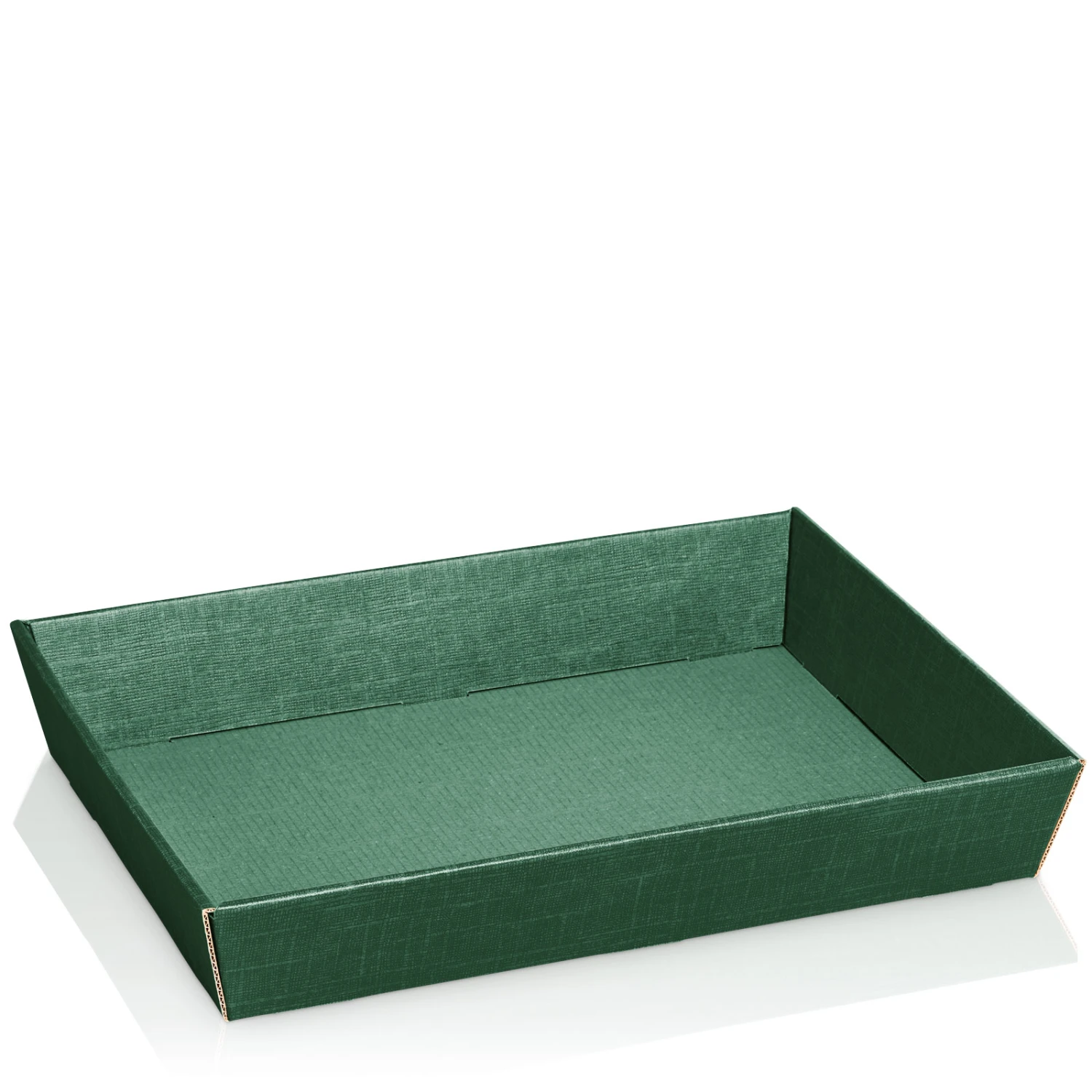 Flache Geschenkkörbe maxi mit Strukturprägung aus Karton in der Farbe Grün.