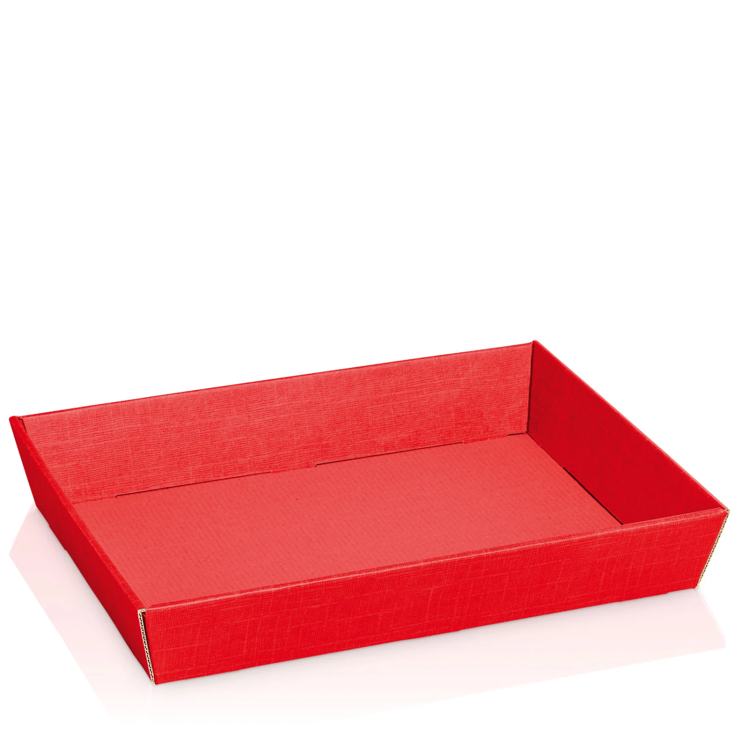 Flacher Präsentkorb maxi mit Strukturprägung aus Karton in der Farbe Rot.