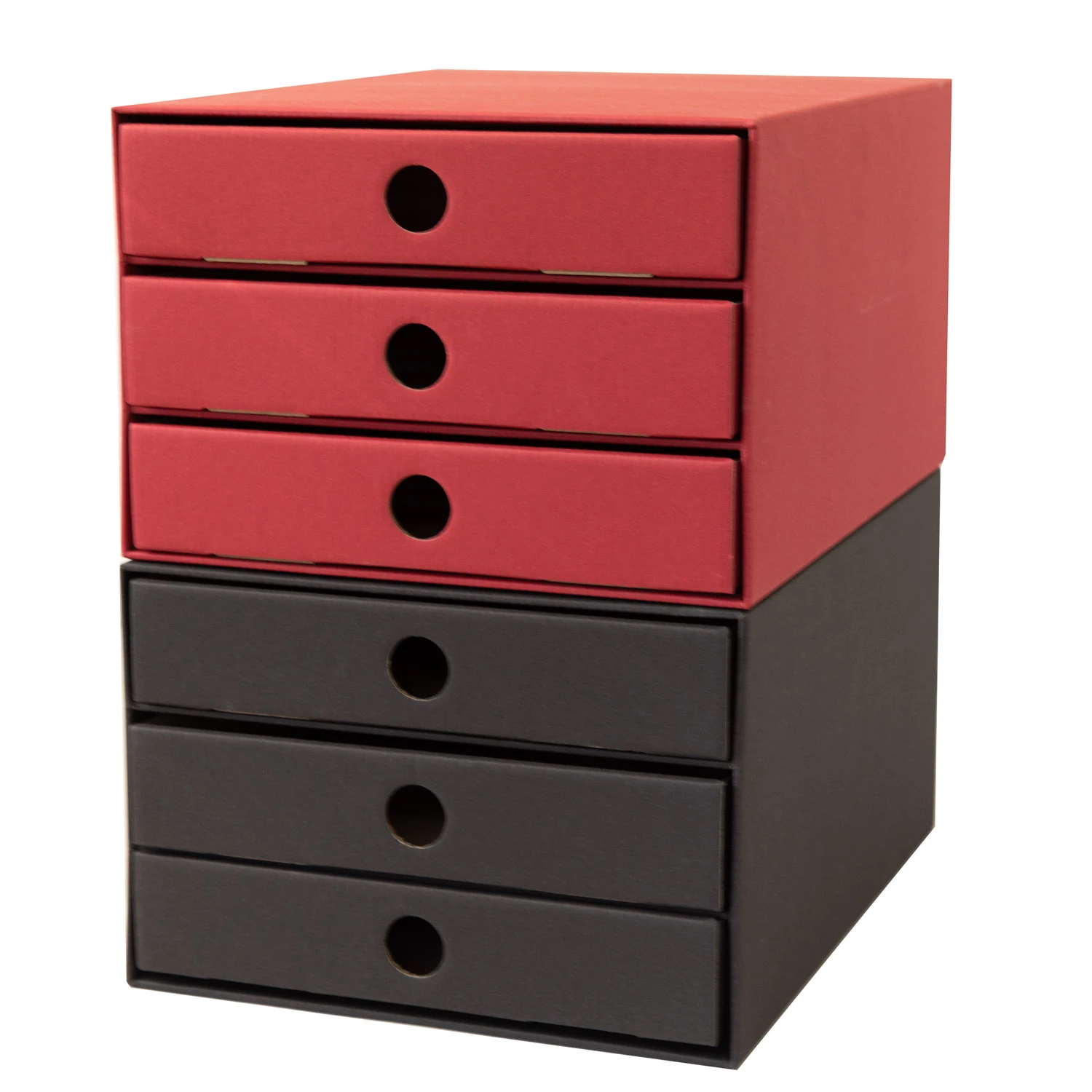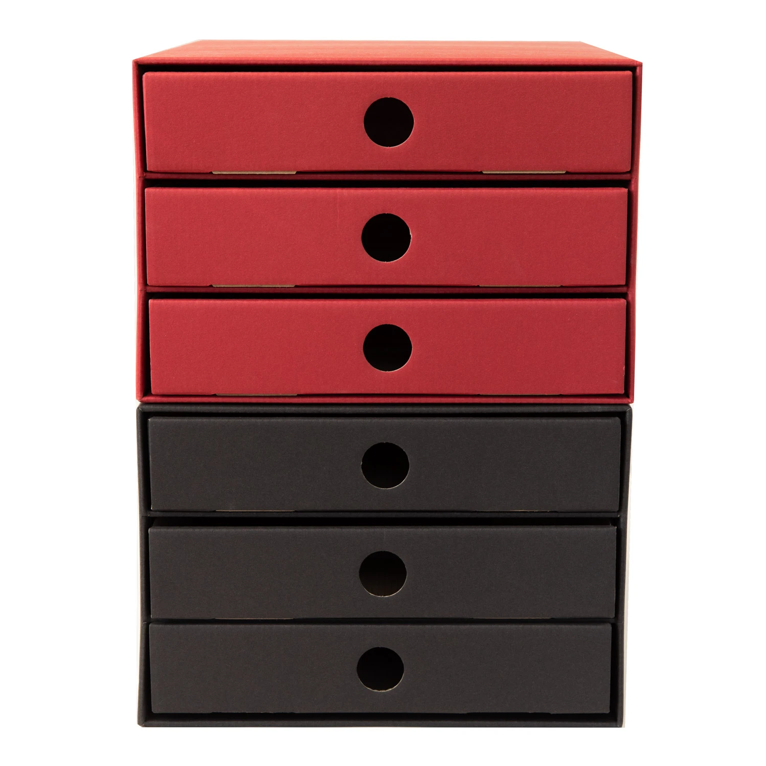 Umweltfreundliche Schubladenboxen im 2er Kombipack DIN A4 Bordeaux und Schwarz mit 3 Schubfächern stapelbar aus Recycling Karton für Ordnung und Lagerung