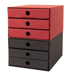 Die stapelbaren Schubladenboxen eignen sich z.B. im Kinderzimmer für Malbücher. Stifte, Aufkleber und Bauklötze. Für Erwachsene lassen sich wichtige Papiere und Dokumente wunderbar und übersichtlich sortieren. Mit unseren roten Schubladenboxen sind Ihre Papiere und Utensilien nicht nur gut sortiert sondern auch ordentlich und platzsparend verräumt. Die Schubladenboxen sind auch wunderbar mit weiteren angebotenen Farben kombinierbar.