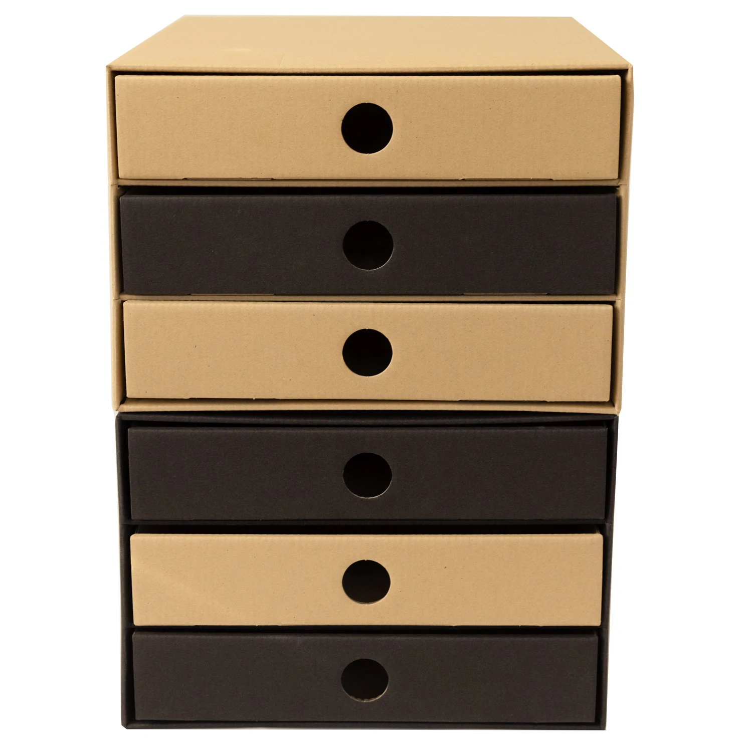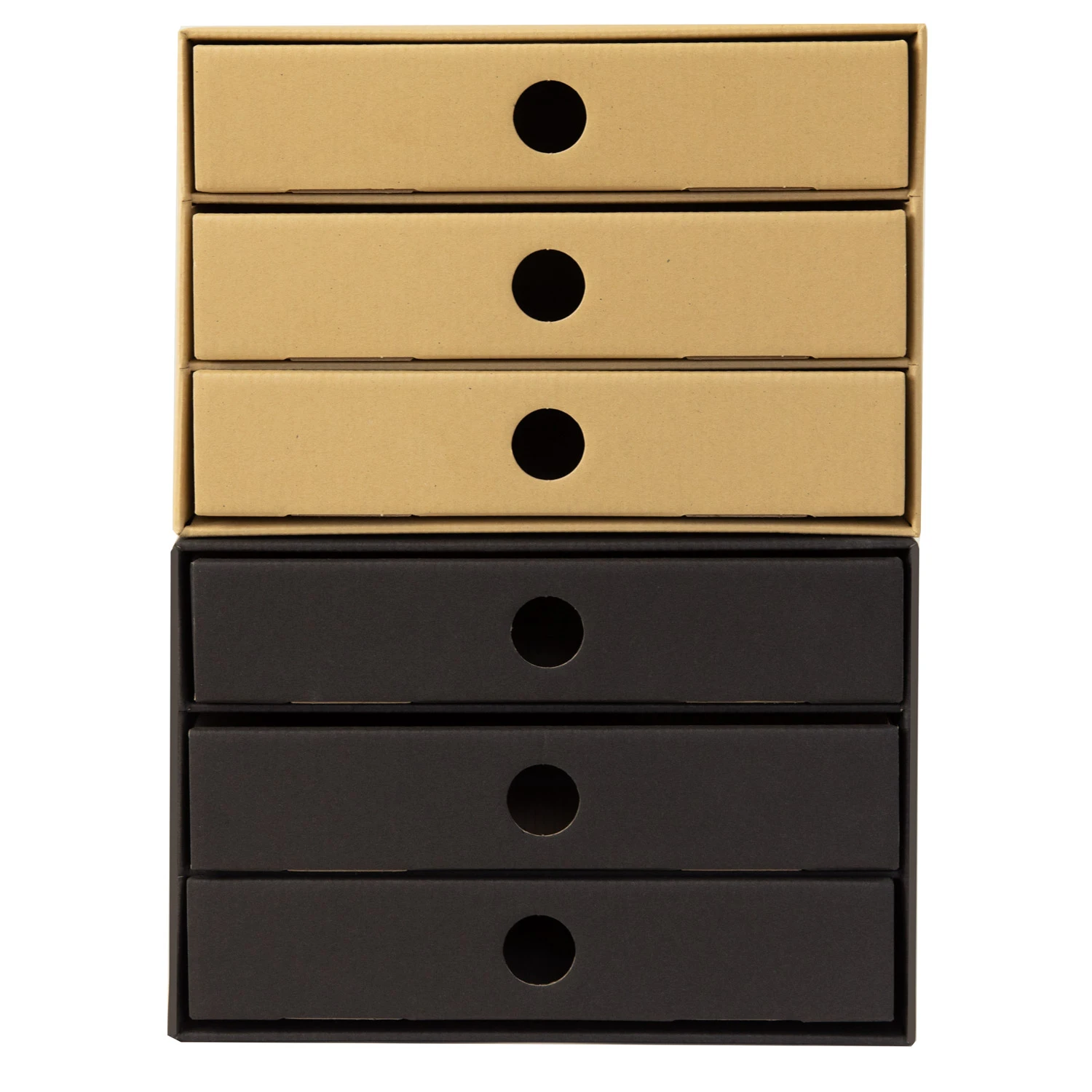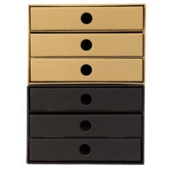 Nachhaltige Schubladenboxen im 2er Kombipack DIN A4 Natur und Schwarz mit 3 Schubfächern stapelbar aus Recycling Karton für Ordnung und Lagerung