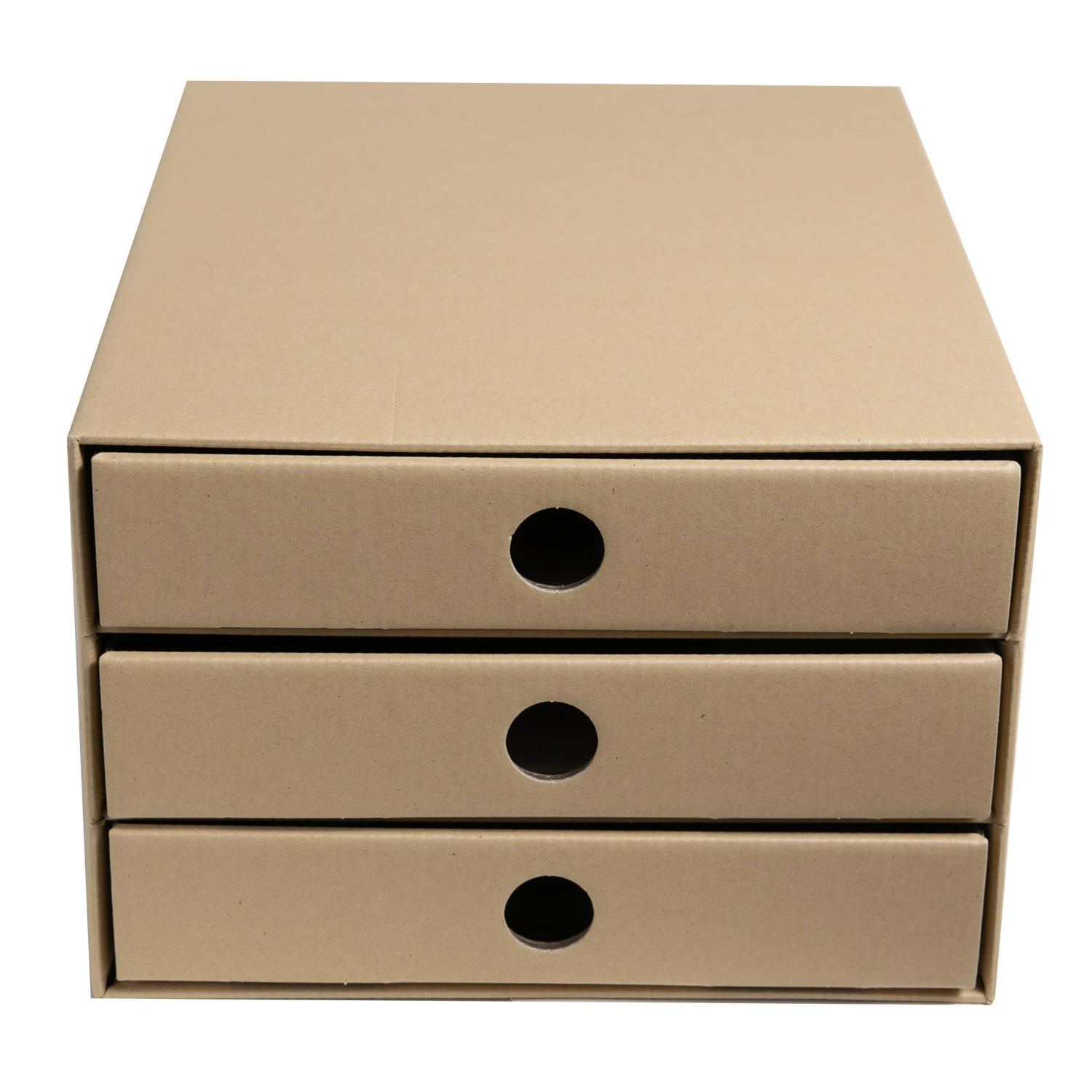Schubladenbox DIN A4 Natur mit 3 Schubfächern stapelbar aus Recycling Karton für Ordnung und Lagerung