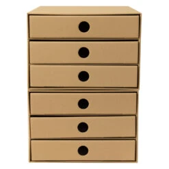 Die Schubladenbox in der Farbe Natur bietet mit einem Außenformat von 32,5 x 25,5 x 17,5 cm und einem Innenformat der Schubladen von 31 x 24,5 x 4,7 cm viel Platz zum Verstauen Ihrer Papiere oder Utensilien. Selbstverständlich lassen sich die Aufbewahrungsboxen nicht nur als Ablagebox für Papiere einsetzen sondern bieten sich auch perfekt für Spielzeug, Kleinutensilien, Werkzeug und sämtlichen Krimskrams, der aufgeräumt werden will, an. Die Aufbewahrungsboxen sind gut aufeinander stapelbar und schaffen viel Stauraum auf wenig Fläche. Optimal für Kinderzimmer, Büro, Lager, Werkstatt, Schule und Homeoffice. Die Oberfläche der Aufbewahrungsbox eignet sich auch hervorragend zur kreativen Verpackungsgestaltung, durch Beschriften, Bemalen oder Bekleben können Sie der Aufbewahrungsbox Ihre persönliche Note verleihen. Durch die integrierten Schubladen kann der Inhalt zur Entnahme einfach aus dem Korpus gezogen werden. Mit einer Beschriftung müssen auch nicht erst viele Schubladen unnötig geöffnet werden, bis man das richtige findet das man sucht. Die Schubladenboxen sind einfach zu stapeln und lassen sich durch die herausziehbaren Schubladen mittels eines praktischen Griffloch jederzeit öffnen und wieder verschließen.