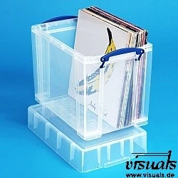 Hochwertige Kunststoffbox ideal für die Vinyl-Aufbewahrung. Stabile LP-Schallplattenbox für ca. 70 12 “ Langspielplatten. Auch geeignet für A4-Aktenordner, Hängemappen oder Briefmarkenalben.