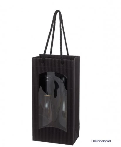Tragetüte Mini Welle Schwarz für zwei Flaschen