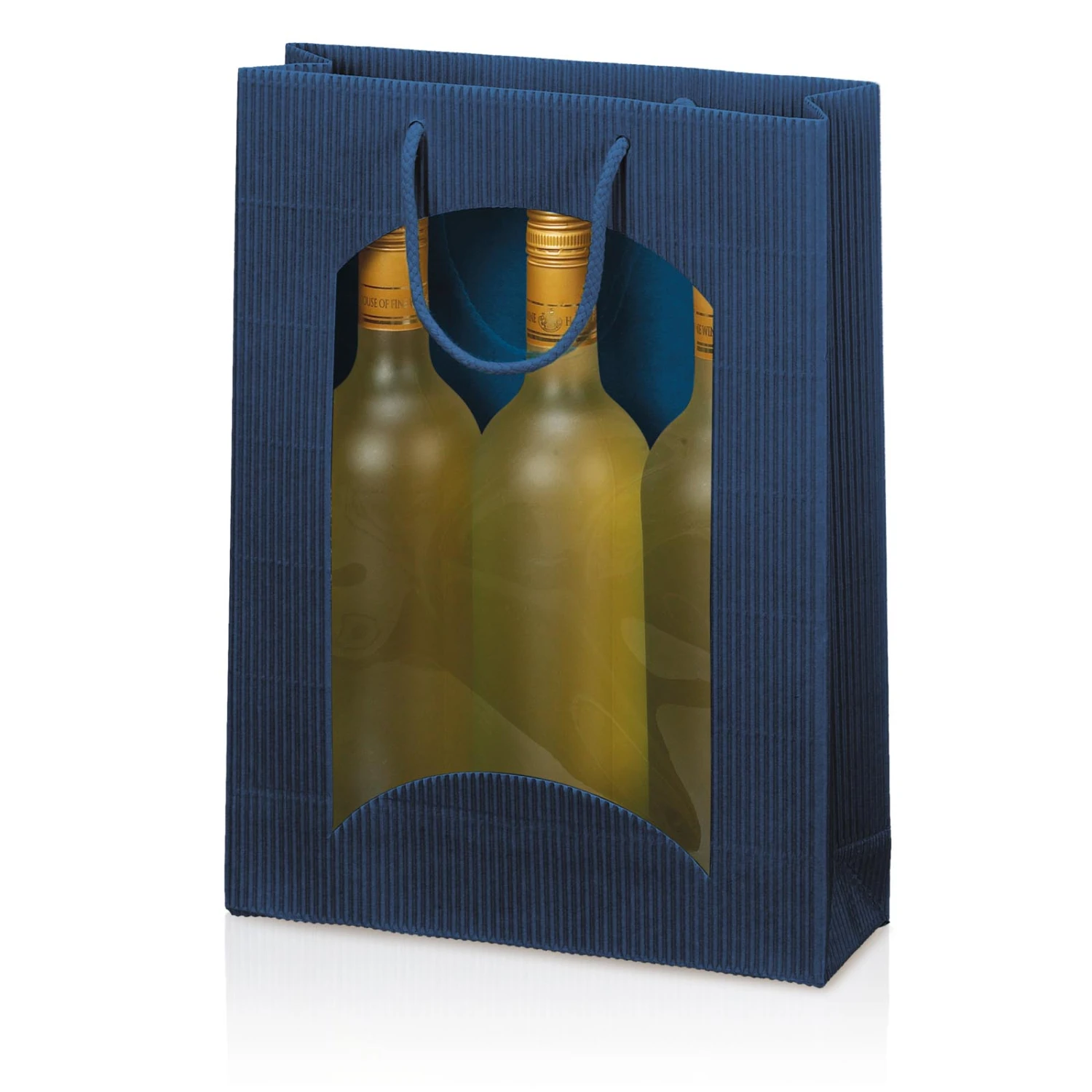 Tragetüte mit Fenster aus Welle für 3 Flaschen in Blau