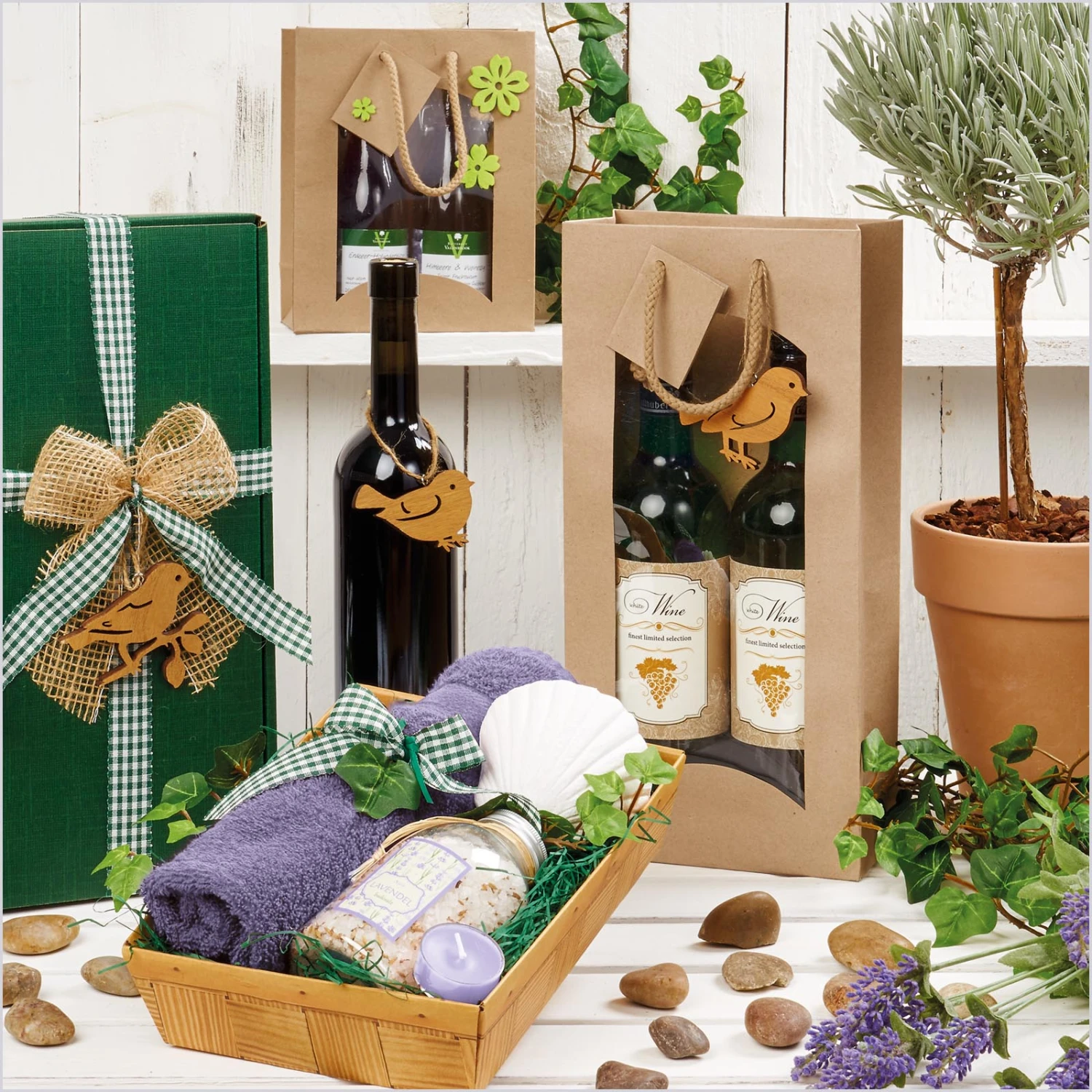 Unsere Weintragetaschen sind in vielen verschiedenen Farben und unterschiedlichen Ausführungen und Größen erhältlich. Zur weiteren Veredelung Ihrer Geschenke finden Sie bei uns ebenfalls eine große Auswahl an Geschenkdeko in den passenden Farben, wie das farbige Füllmaterial PresentFill, Geschenkbänder und Fertigschleifen.