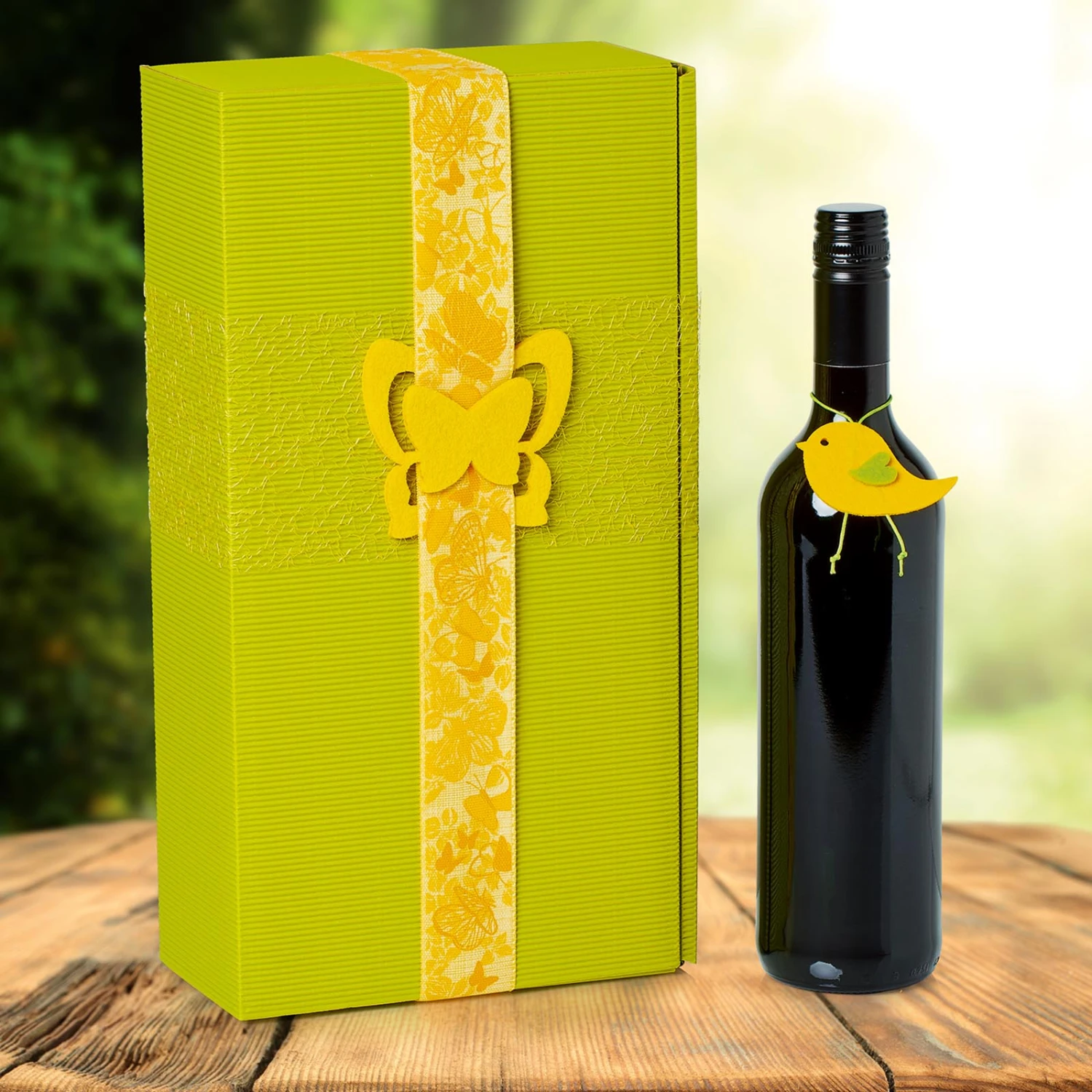 Weinpräsentkartons für zwei Flaschen in Welle Karton Limette