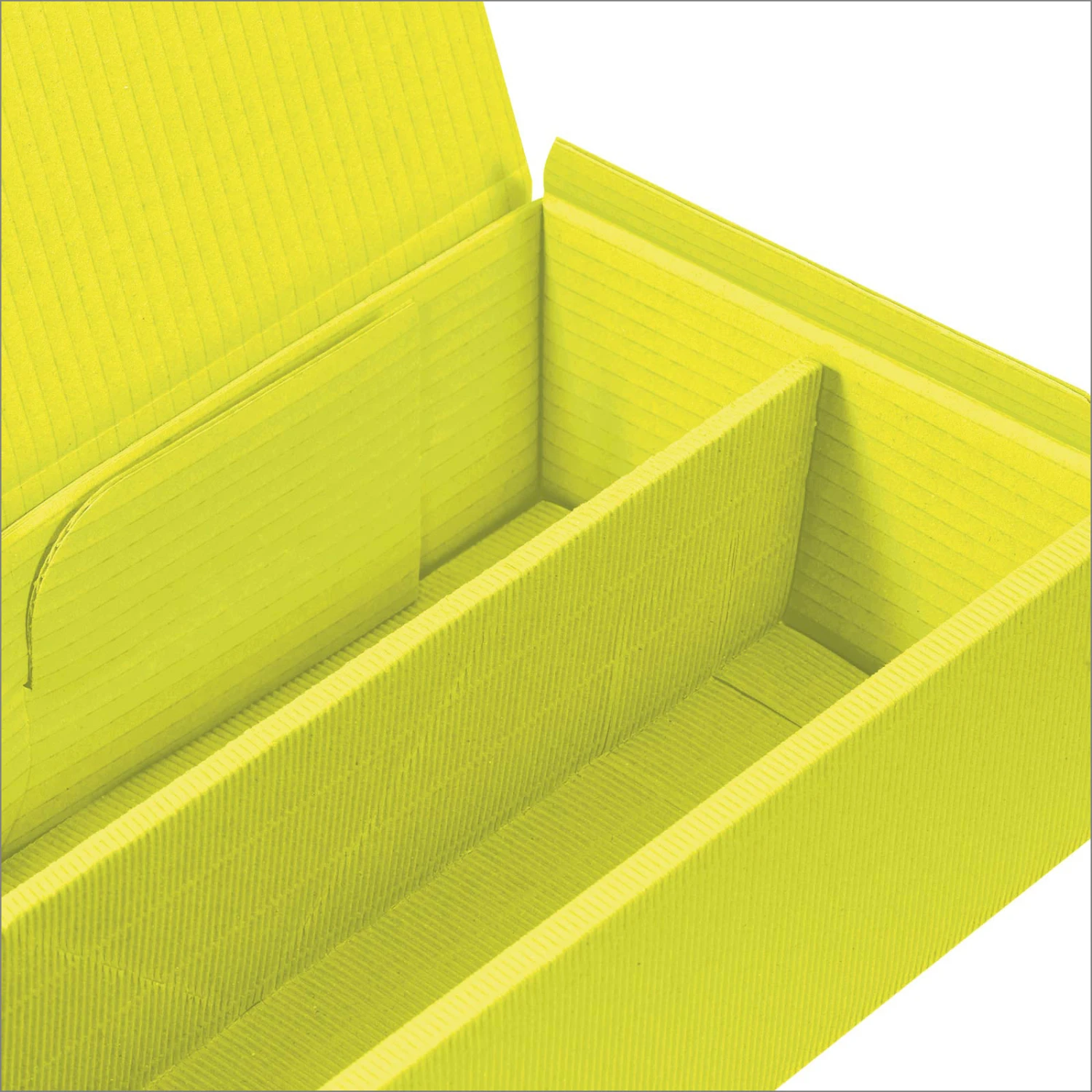 Diese hochwertigen Weinpräsentkartons haben eine Oberfläche aus offener Welle Karton in Limette. Der Weinpräsentkarton ist für zwei Flaschen Wein oder Sekt bis 360 mm Länge perfekt geeignet. Die Innenseite sowie die separate offene Welle Einlage sind in der gleichen Farbe wie die Außenseite. Die Präsentkartons haben eine separate Flascheneinlage, welche die Flaschen voneinander trennen. Damit können die Flaschen beim Transport nicht gegeneinander schlagen und zu Bruch gehen. Dieser Geschenkkarton ist auch bestens für alle anderen Geschenke geeignet. Einfach die Flascheneinlage weglassen und schon haben Sie einen perfekten Geschenkkarton mit viel Platz für viele Produkte. Mit dem passenden DU-LOG Versandkartons sind die Weinpräsentkartons PTZ-Postgeprüft / DHL-Certified. Somit kommt Ihr Inhalt auch sicher beim Beschenkten an. Durch vorgestanzte, aufstellbare Ecken lässt sich der Innenraum auf verschiedene Flaschenlängen einstellen.