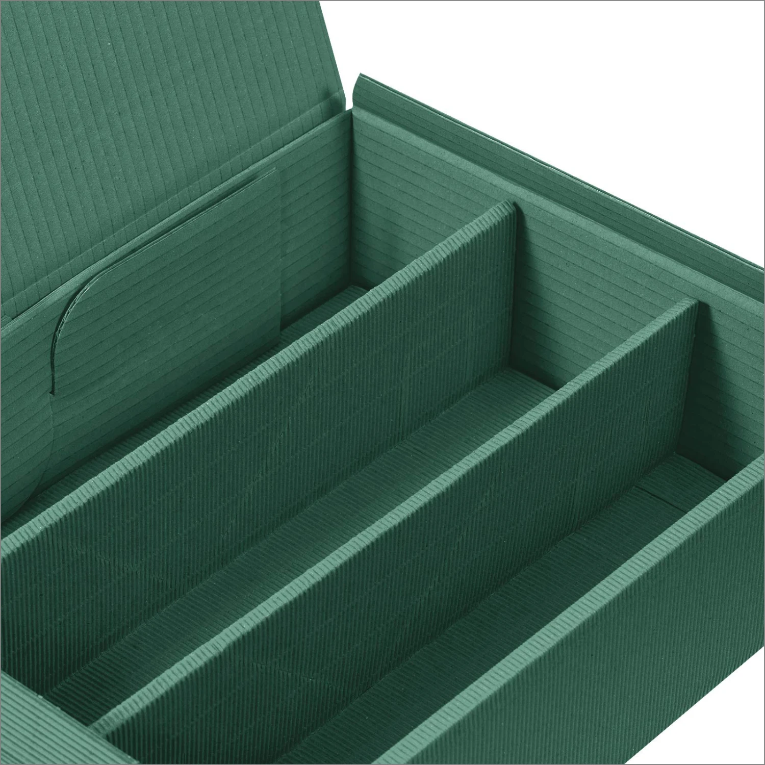 Geschenkkarton für drei Flaschen in Welle Karton Grün